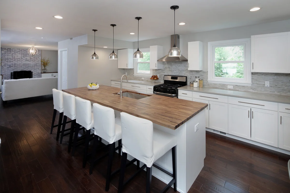 CHECK OUT THIS 5 SEAT CUSTOM BUTCHER BLOCK ISLAND.