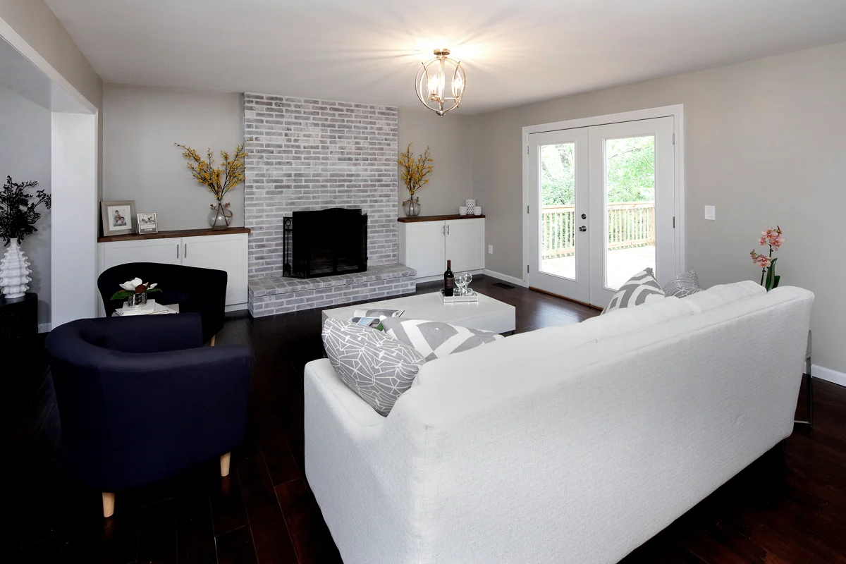 WHITE WASHED FIREPLACE WITH BUILT IN'S
